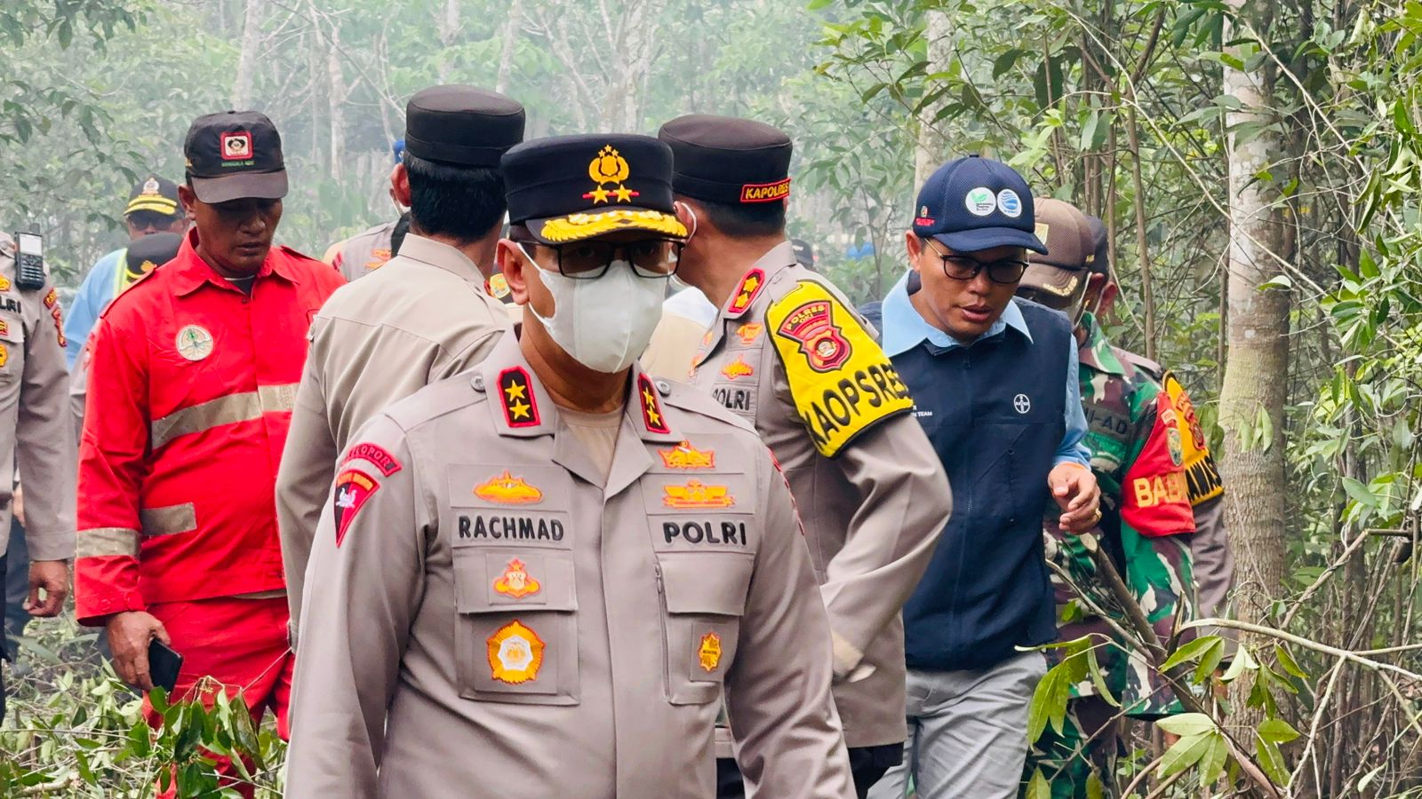 Menggunakan helikopter, Kapolda Sumsel, Irjen Pol A Rachmat Wibowo yang didampingi Irwasda Kombes Feri Handoko dan Karo Ops Kombes M Anis Prasetyo serta Dirpolairud Kombes A Kusmaedi pada Rabu (14/8/2024) turun langsung ke lapangan melihat kondisi lahan terbakar dan operasi pemadaman api di kecamatan Lempuing Jaya OKI yang sudah terbakar selama tiga hari dengan seluas kebakaran 10 hektar.