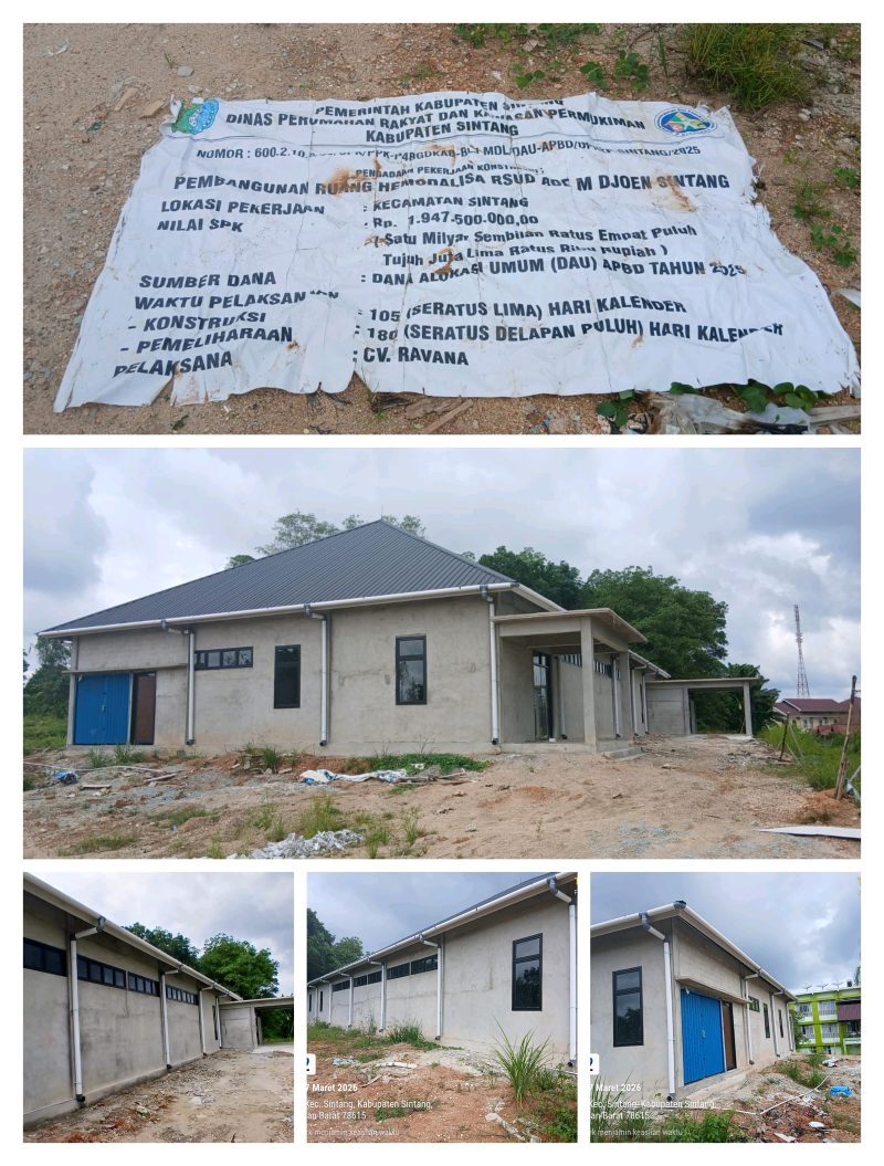 Sintang– Kalbar–Harusnya Desember 2025 Tuntas, tetapi yang terjadi, hingga 2026 proyek pembangunan Ruang Hemodalisa RSUD Sintang segede Rp 1,9 Miliar belum juga menunjukan tanda-tanda klir.