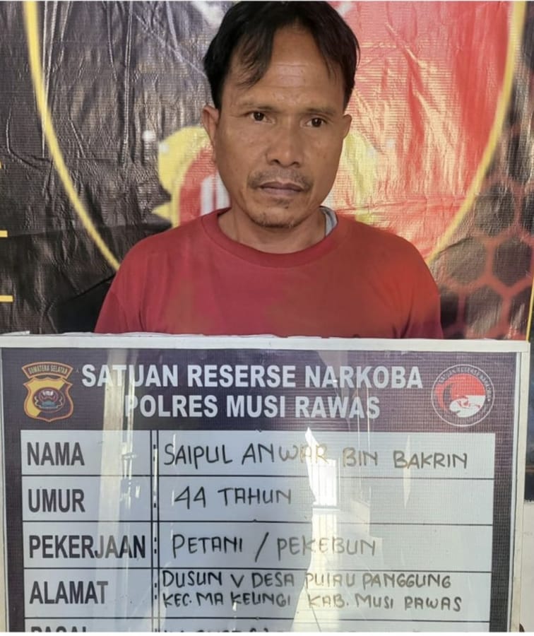 Hingga akhirnya membuat, Saiful Anwar (44), dibekuk Satresnarkoba Polres Musi Rawas (Mura), dirumahnya di Dusun VI, Desa Pulau Panggung, Kecamatan Muara Kelingi, Kabupaten Mura, sekitar pukul 14.00 WIB, Sabtu (17/8/2024).